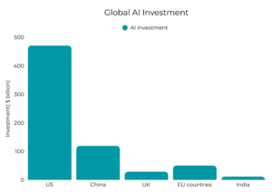 Since 2013, the US has attracted $470.9 billion in private AI investment. China pulled in $119.3 billion. India? Just $11.29 billion. Even the UK attracted $28.2 billion over the same period. A World Economic Forum (WEF) white paper co-authored with Bain & Company ranks India 8th out of 11 countries when cumulative AI investment (2010–2024) is measured as a percentage of GDP.