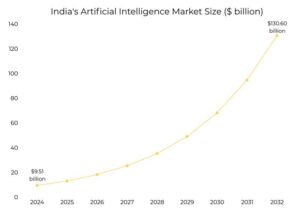 HDFC Securities projects a sharp recovery beginning in 2026, driven by AI-centric engagements. TCS and HCLTech alone are projecting nearly $2 billion in combined annual recurring revenue from AI offerings. India’s AI market, valued at $13 billion in 2025, is projected to reach $130 billion by 2032, with a 39% CAGR.